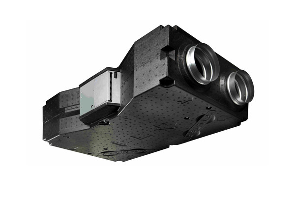 Vzduchový výkon 315 m3/hod. při 100 Pa, jednotka bez elektrického předehřevu, s EC motory, integrovaná komfortní designová regulace, hliníkový diagonální protiproudý rekuperátor s účinností až 93%, horizontální instalace.