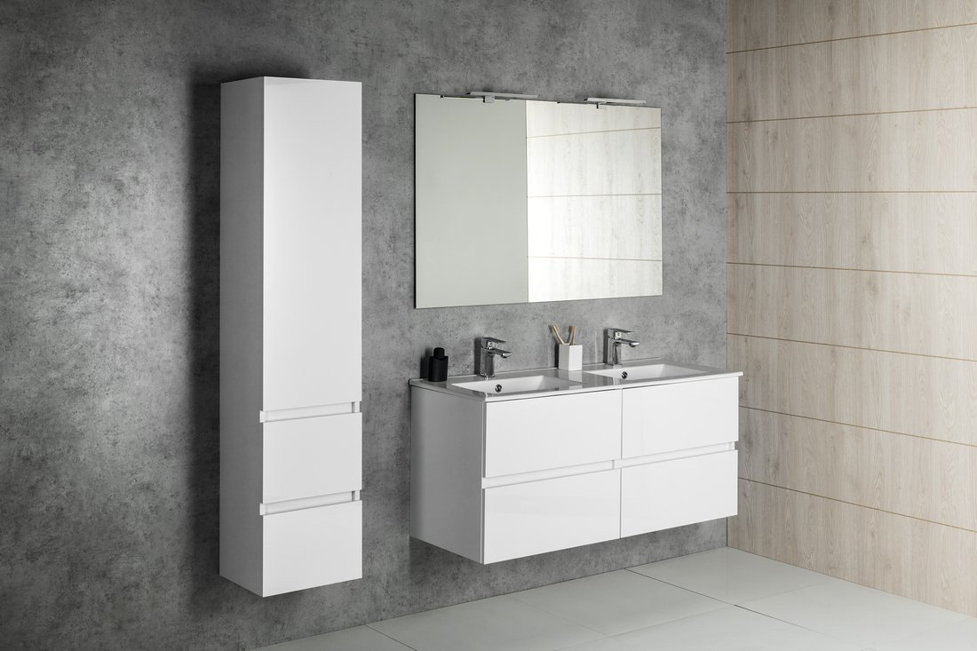 Závěsná koupelnová skříňka v šířce 119cm pro dvojumyvadlo. Tiché a plynulé zavírání zásuvek. Bílá ba...