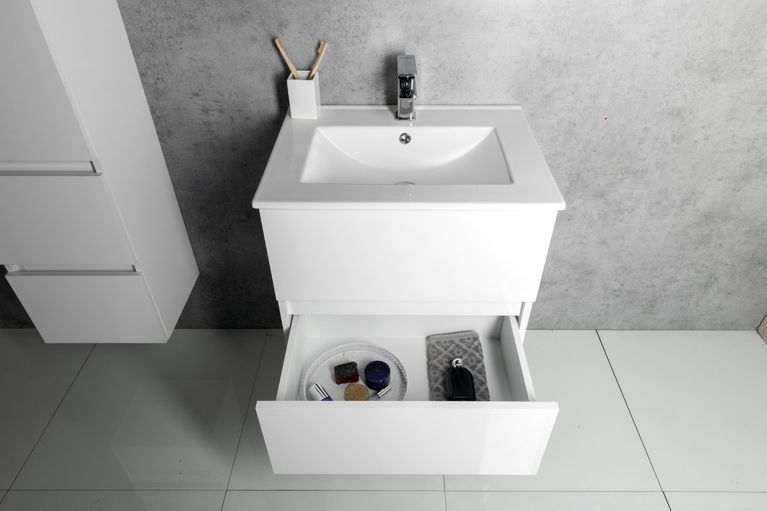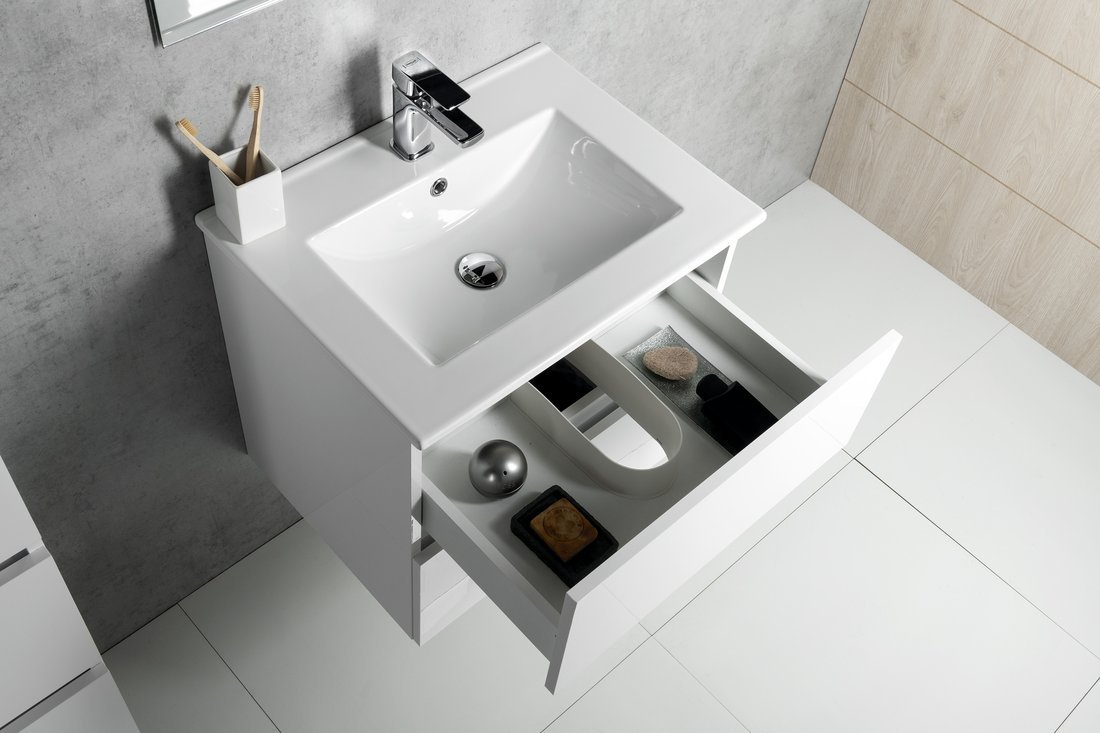 Závěsná koupelnová skříňka v šířce 60cm pro nábytkové umyvadlo. Tiché a plynulé zavírání zásuvek. Bí...