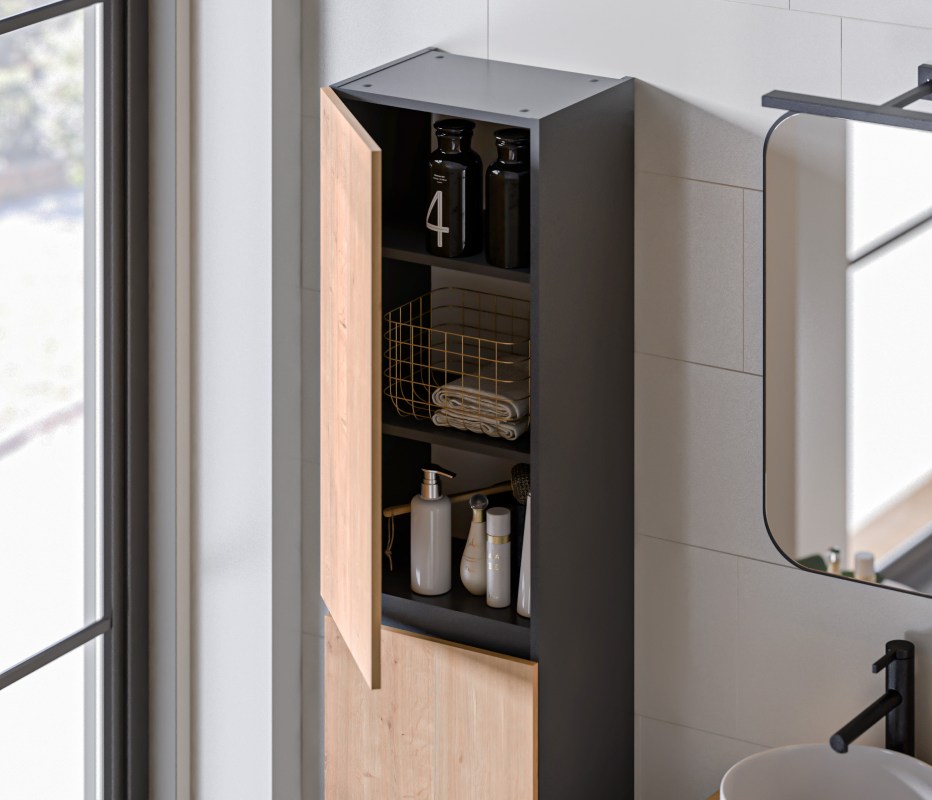 Moderní styl koupelnového nábytku z kolekce Monako Grey osloví všechny, kteří oceňují originalitu. Inovativní design kolekce je zdůrazněn dřevěnými čely v kombinaci s diamantovou šedou. Zrcadlové skříňky a umyvadlové skříňky jsou v několika velikostech s možností použití zápustného umyvadla nebo umyvadla na desku. Nábytek Monaco lze instalovat volitelně jako závěsný nebo stojící na kovových nožičkách. Dodatečná police připevněná k nohám jim dodává jedinečný charakter a nabízí další úložný prostor. Kolekce se vyznačuje jedinečným designem a dobře zvolenými barvami. Nábytek z kolekce Monaco byl navržen v souladu s nejnovějšími trendy.