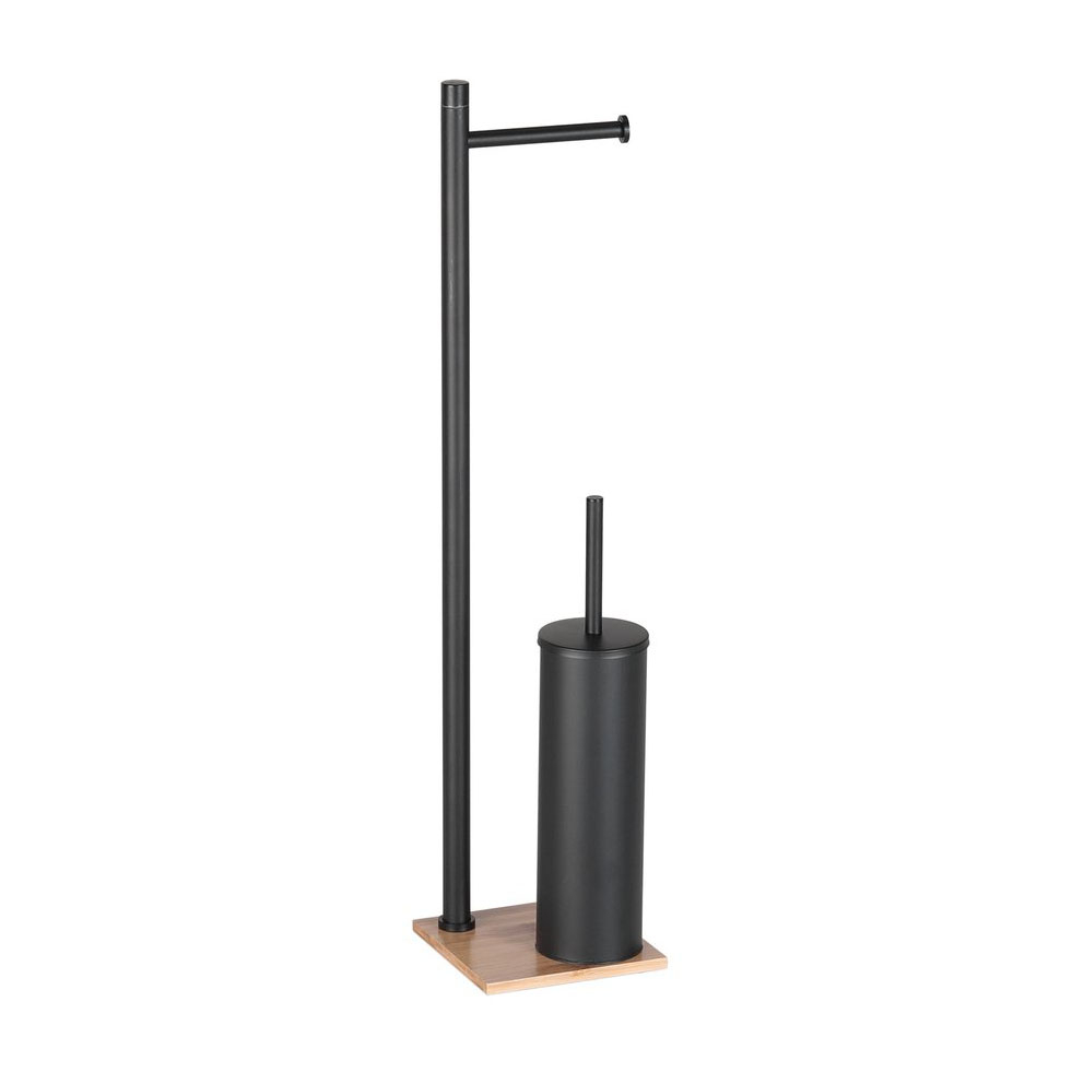 Gedy TRILLY Stojan s držákem na toaletní papír a WC štětkou černá mat/bambus
