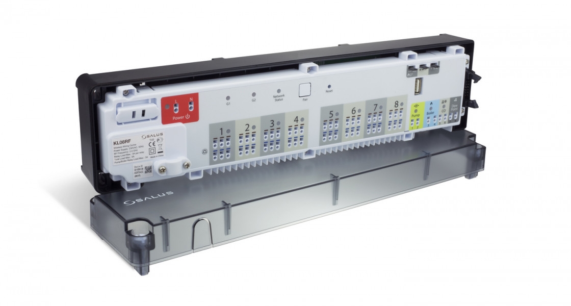 Popis produktu Giacomini Smart Home Salus Bezdrátová centrální svorkovnice pro zónovou regulaci, 8 zón, 32 okruhů - KL08RF