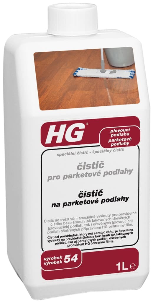 HG čistič pro parketové podlahy (Speciální čistič) je koncentrovaný čistič pro vytírání dřevěných parketových podlah. Svěže voní a čistí beze šmouh.