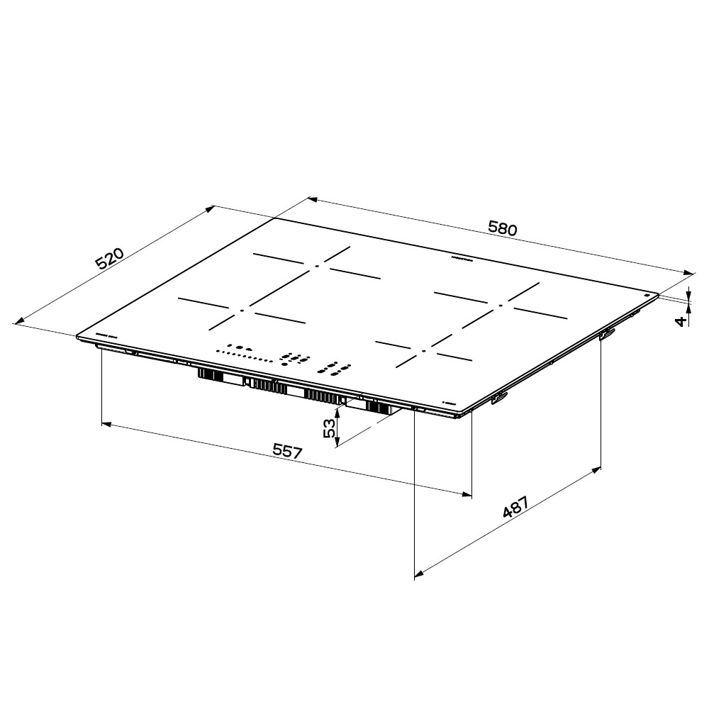 Indukční varná deska se čtyřmi varnými zónami disponuje devíti stupni výkonu a funkcí booster, která zajistí při maximálním výkonu velmi rychlý ohřev.