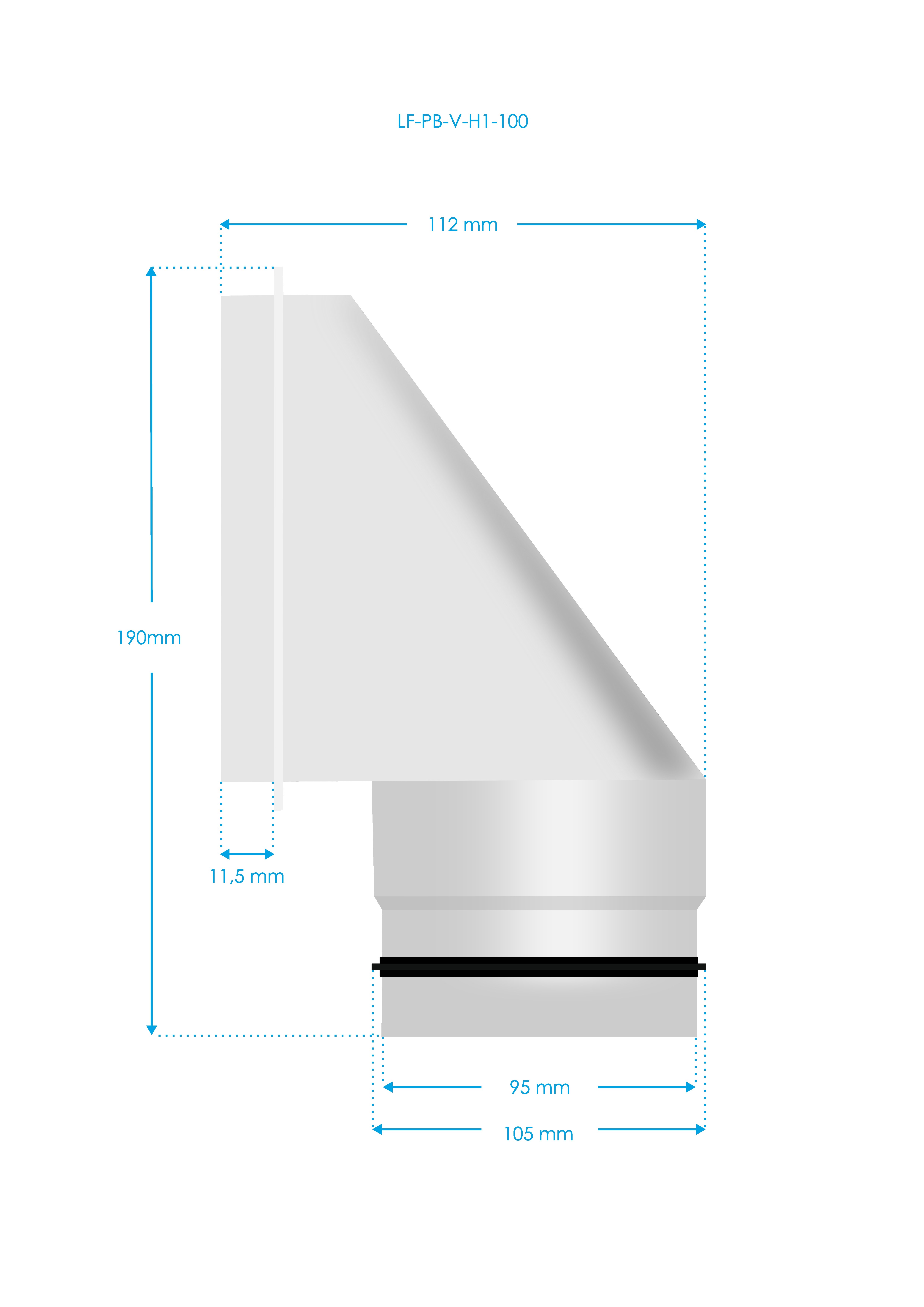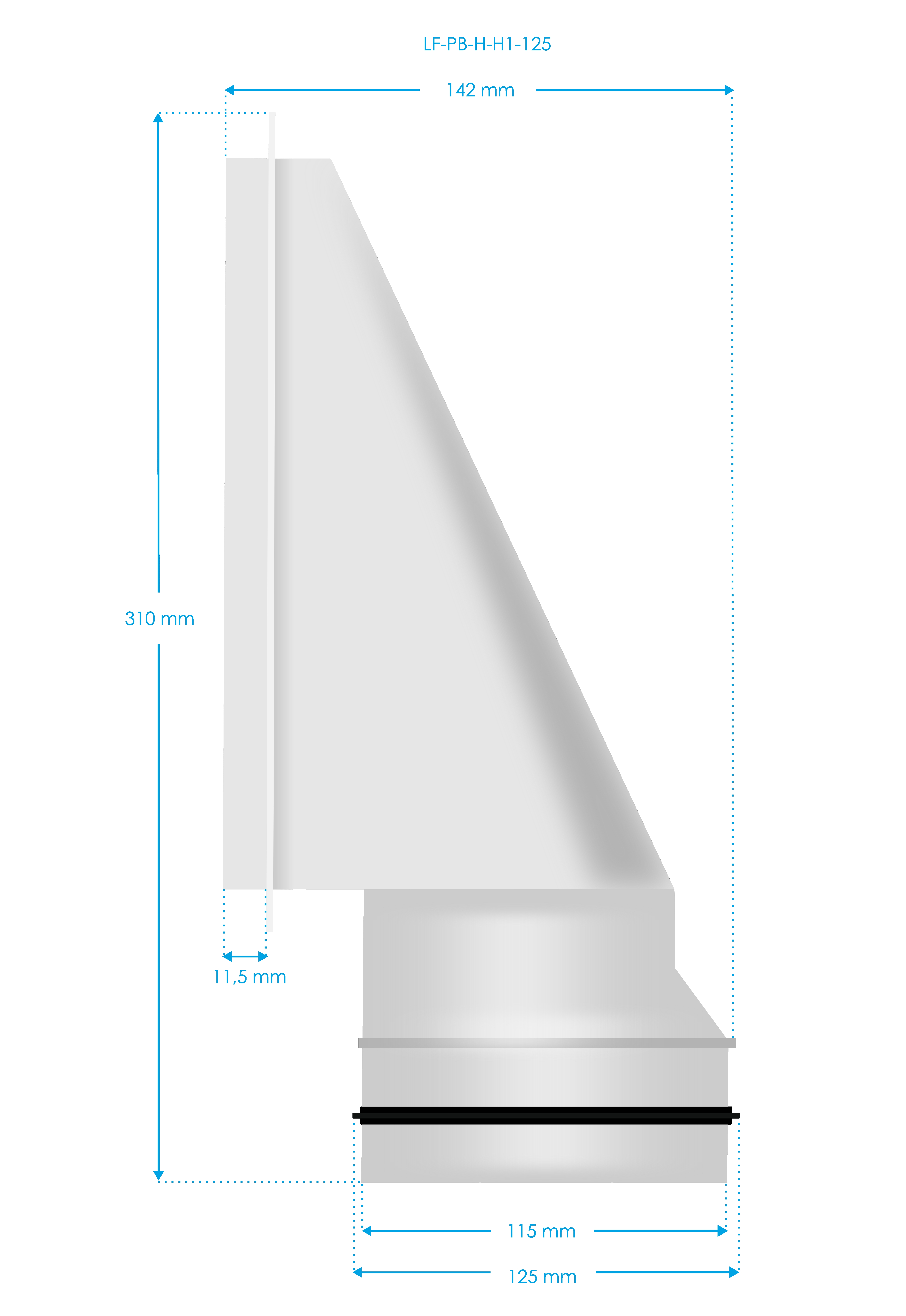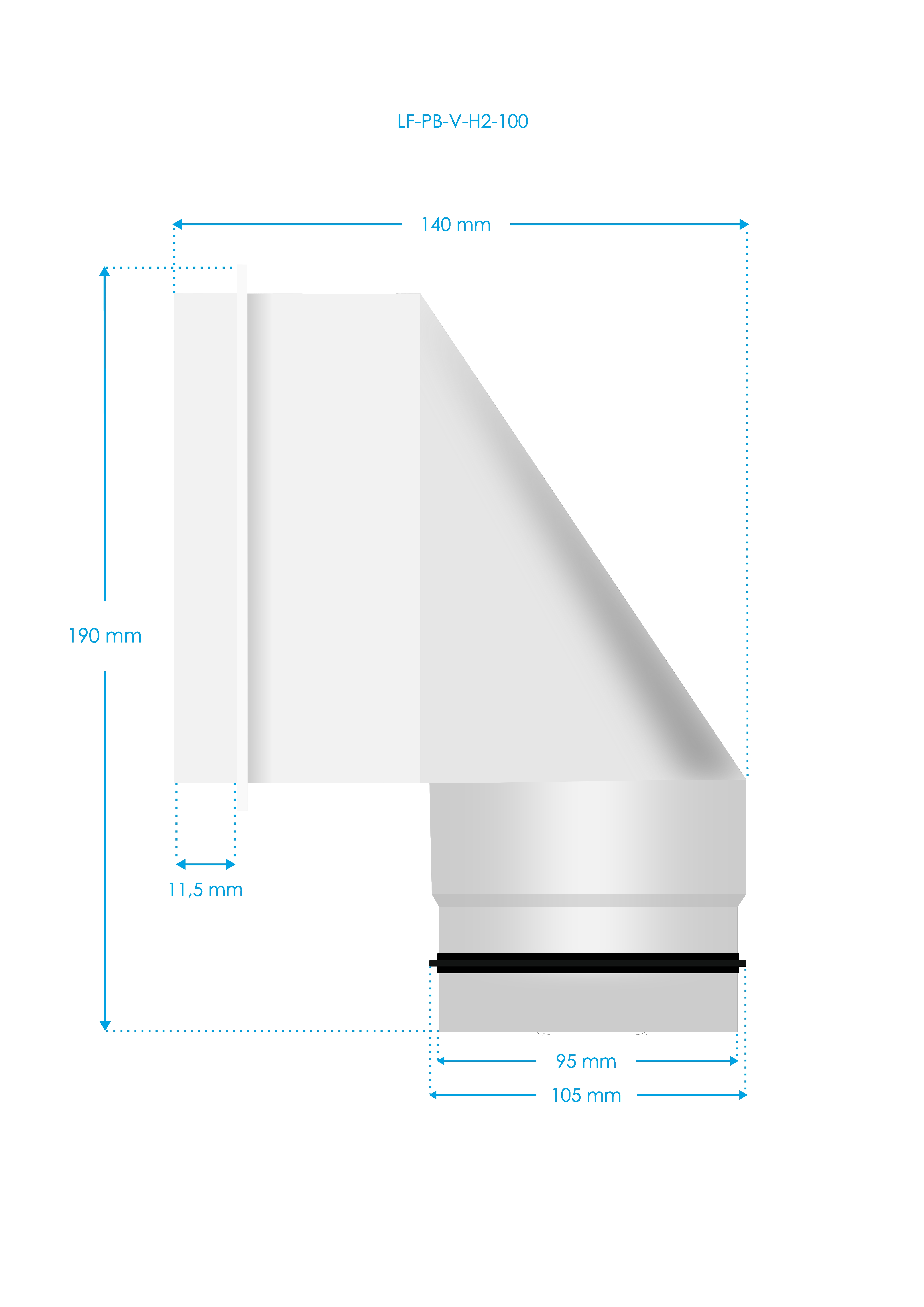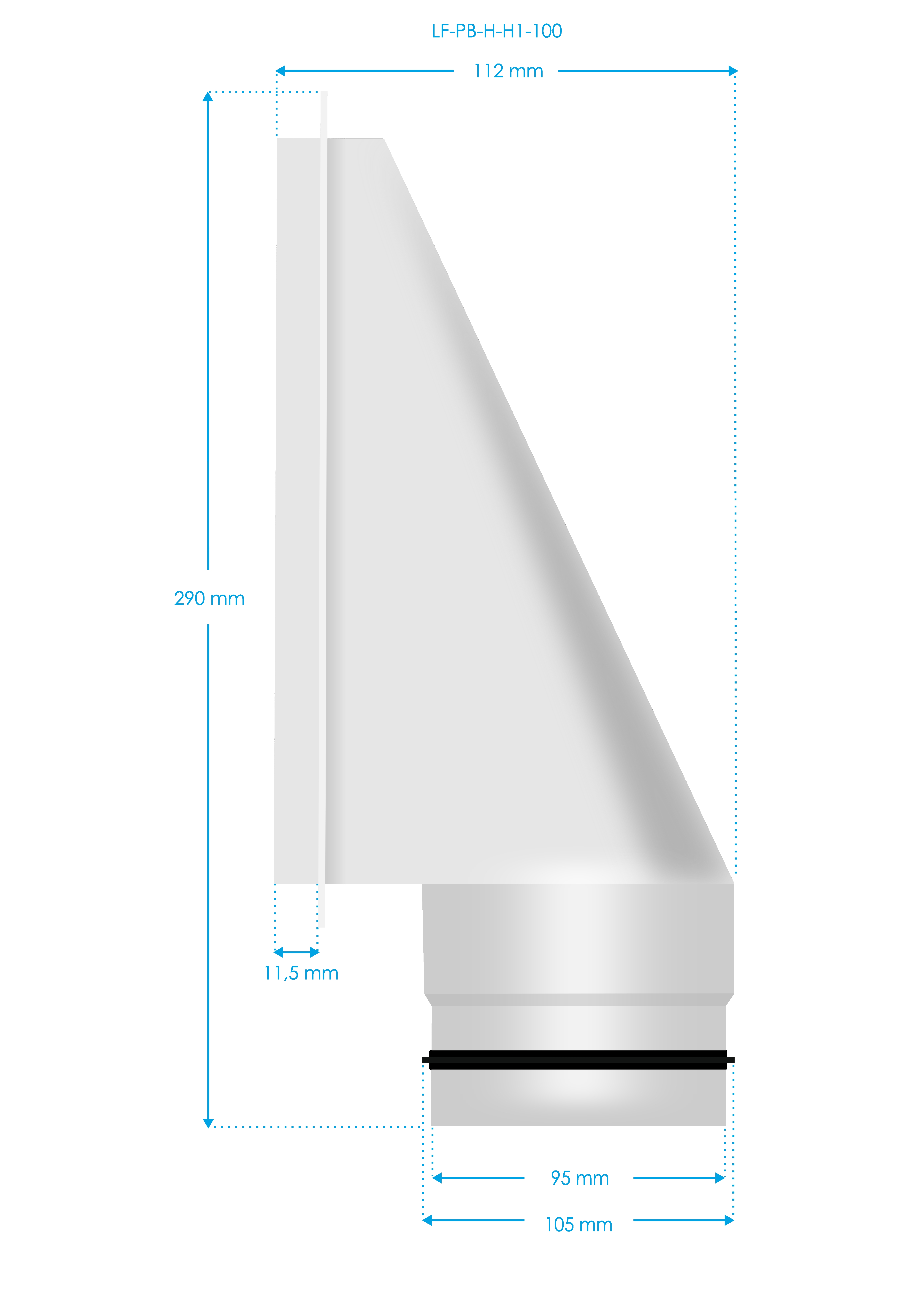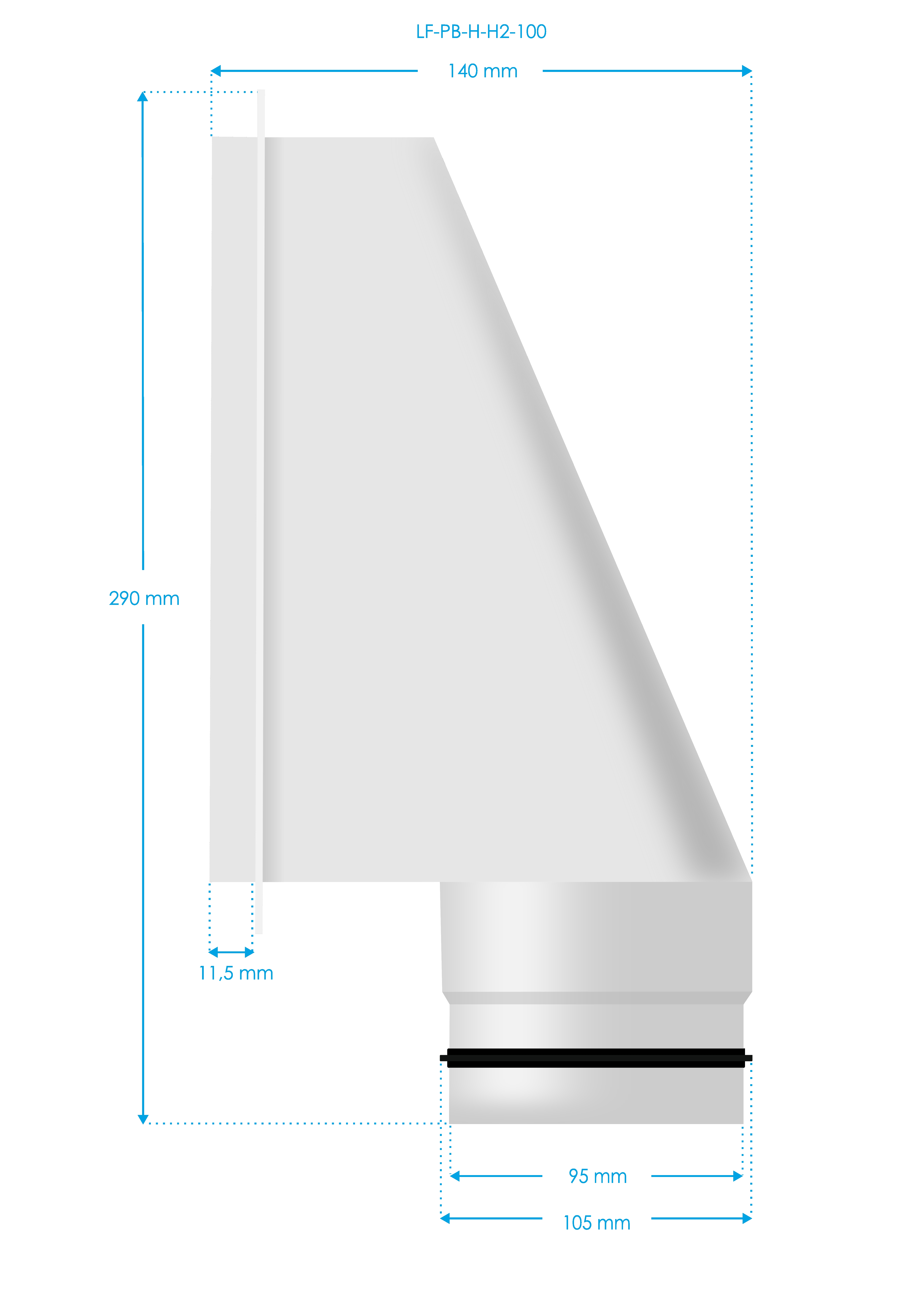 Popis produktu Luftuj Box LUFTOMET Flat Horizontal nízký s hrdlem 90 mm - 90 mm - LF-PB-H-H1-90