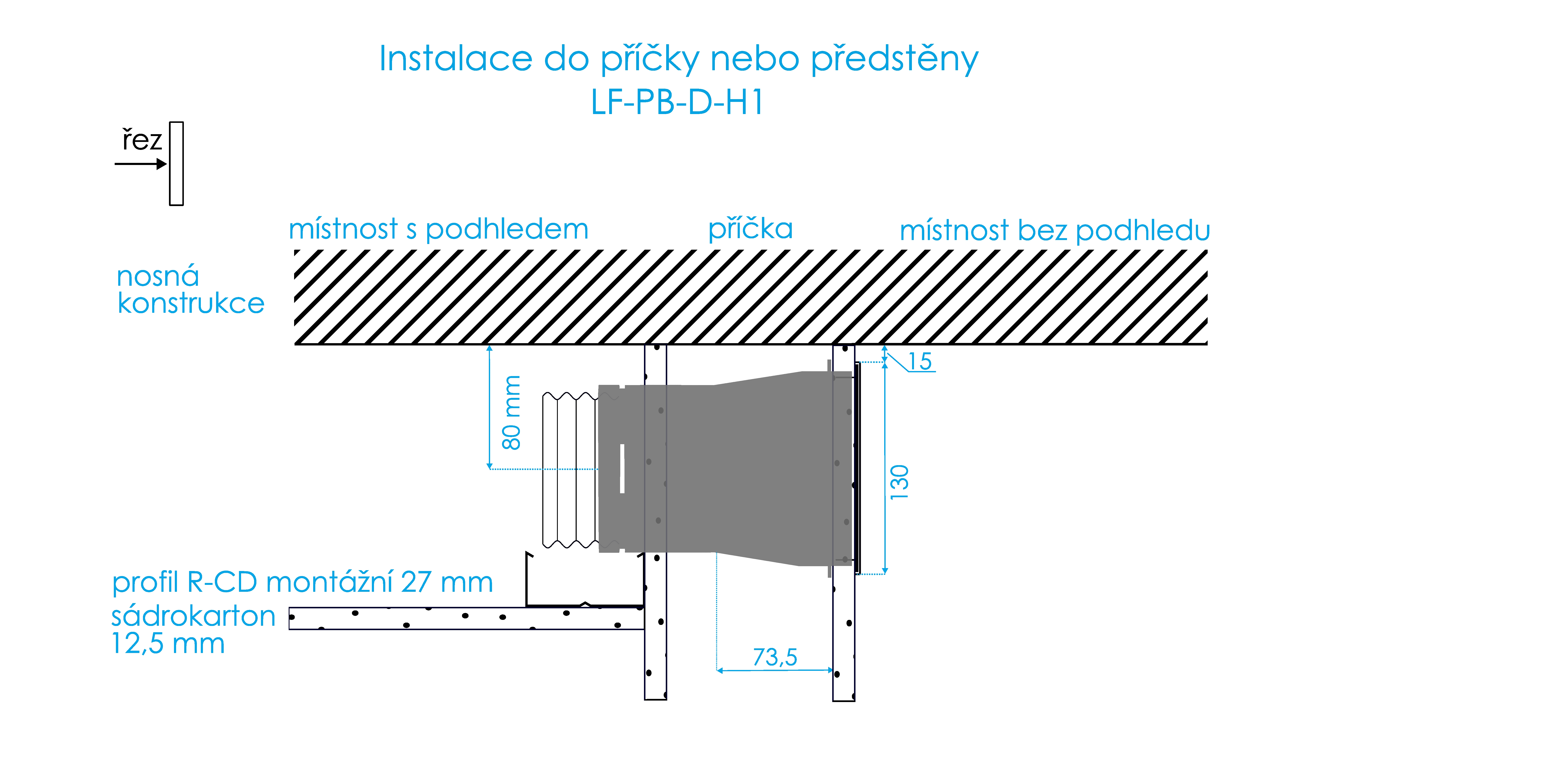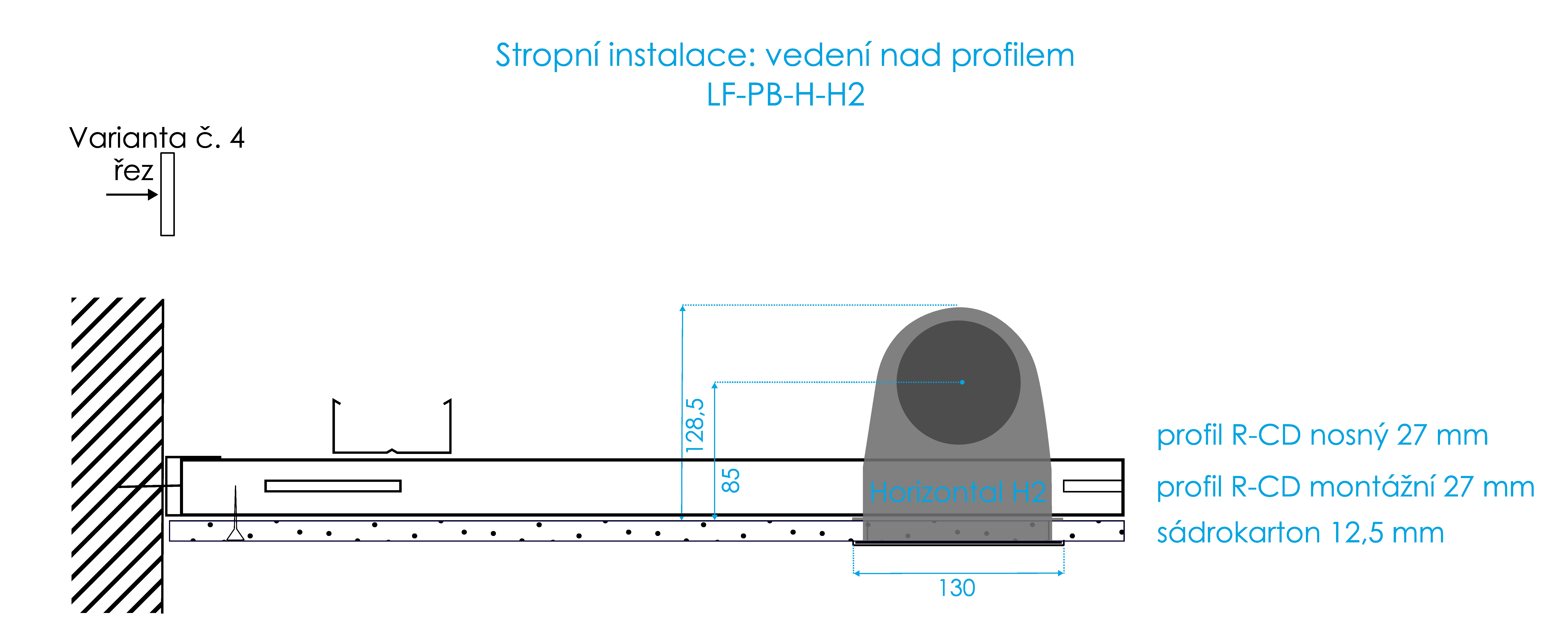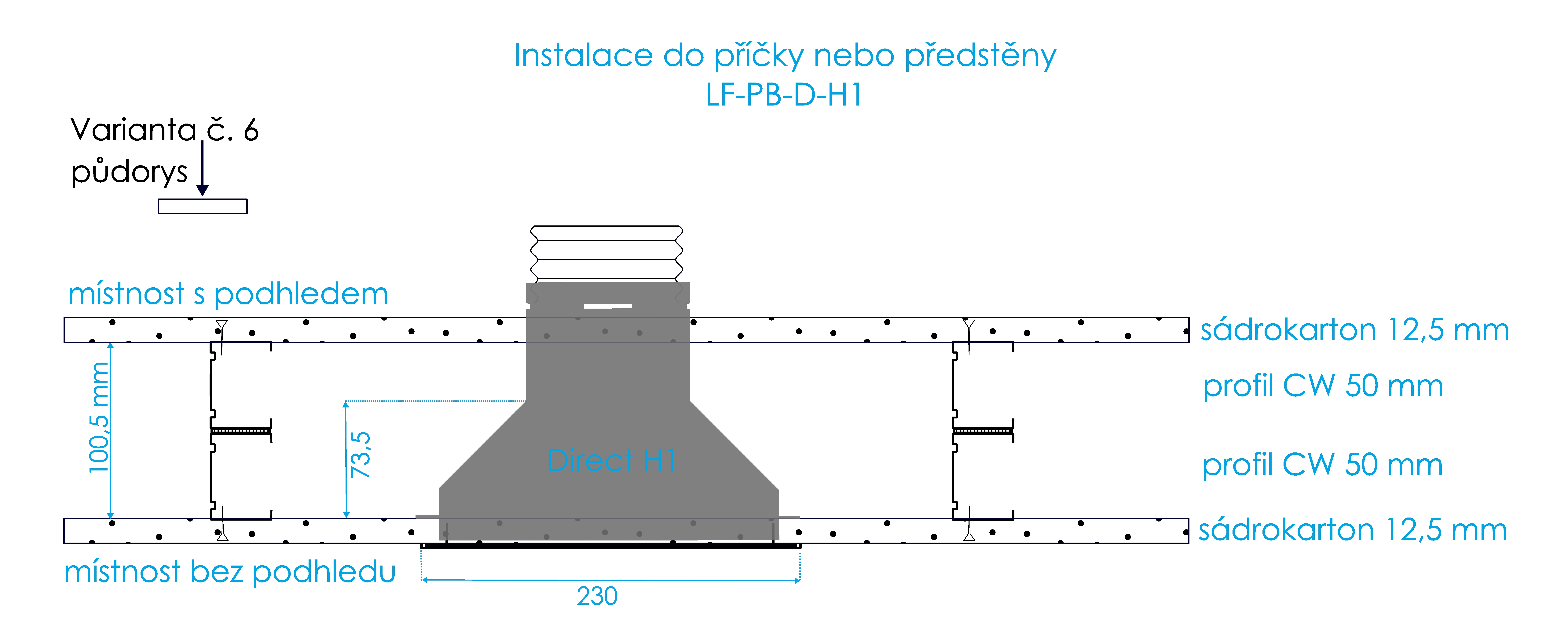 | Stropní instalace | Stěnová instalace | |