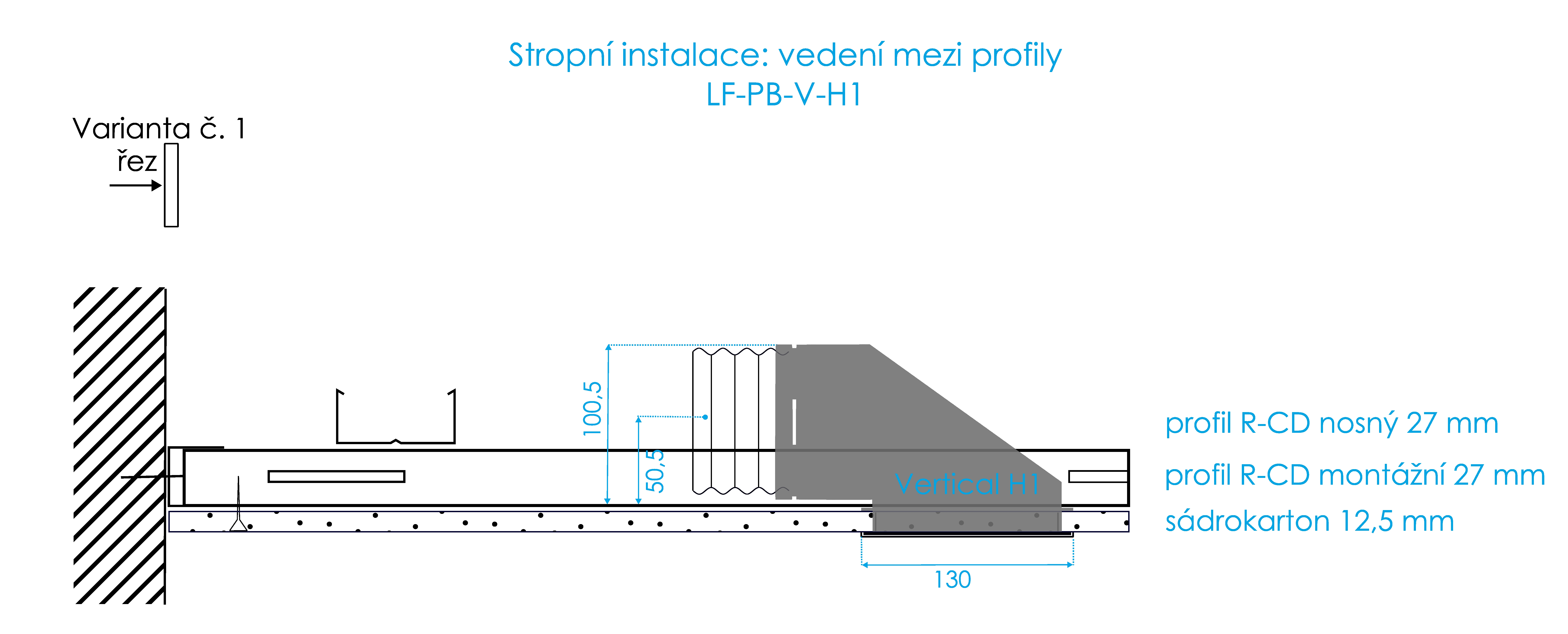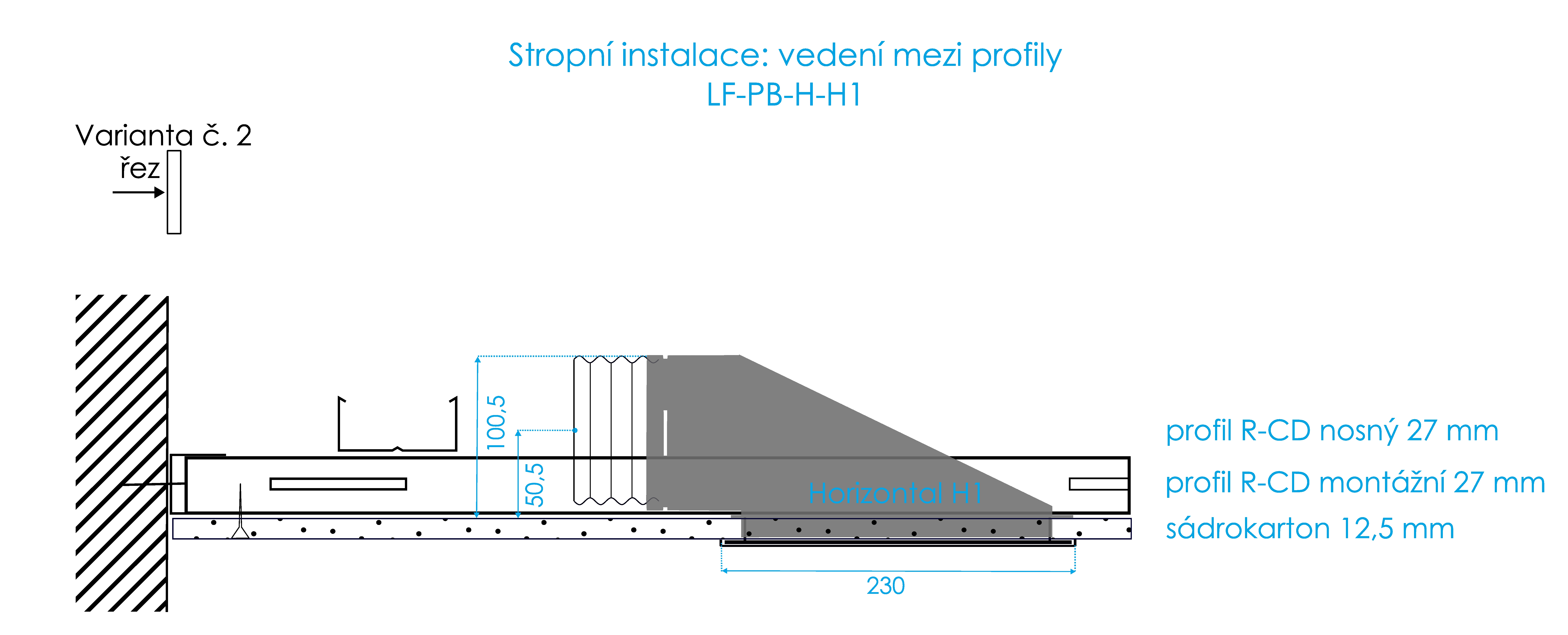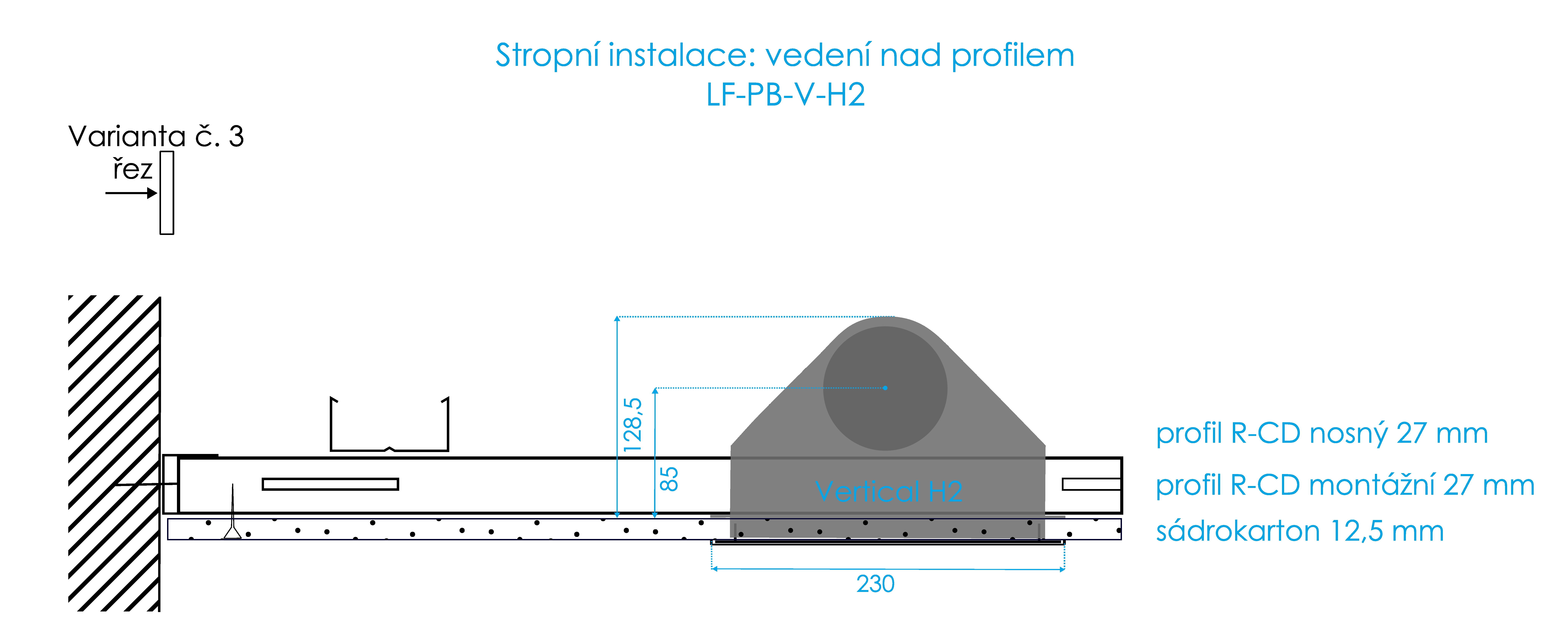 | Stropní instalace | Stěnová instalace | |