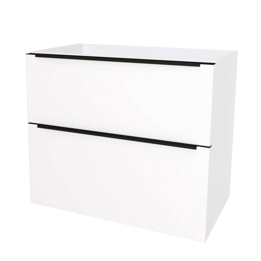 Mailo, koupelnová skříňka 605x700x476 mm, spodní, 2 zásuvky, černé madlo, Multidecor, Arktická bílá. Možno kombinovat s umyvadlem, popř. s koupelnovou deskou na skříňku.