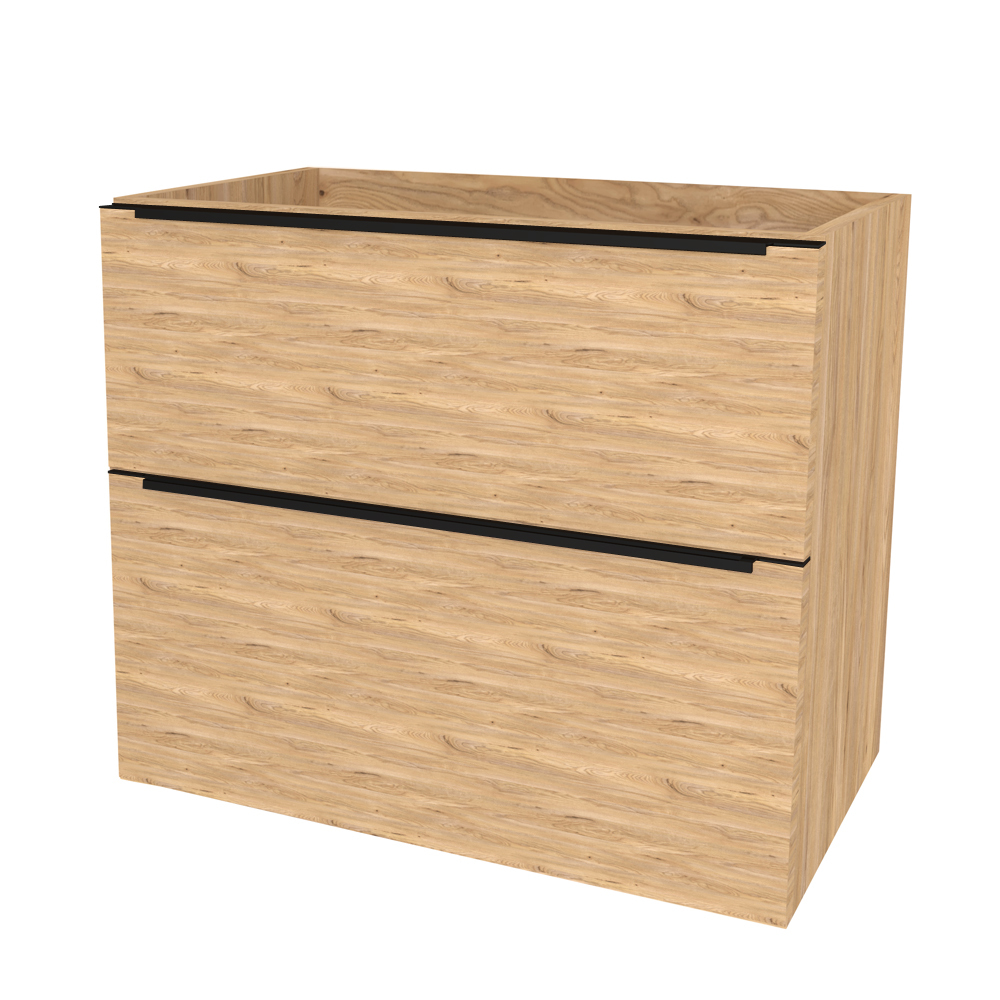 Mailo, koupelnová skříňka 605x700x476 mm, spodní, 2 zásuvky, černé madlo, Multidecor, Jasan horský. Možno kombinovat s umyvadlem, popř. s koupelnovou deskou na skříňku.