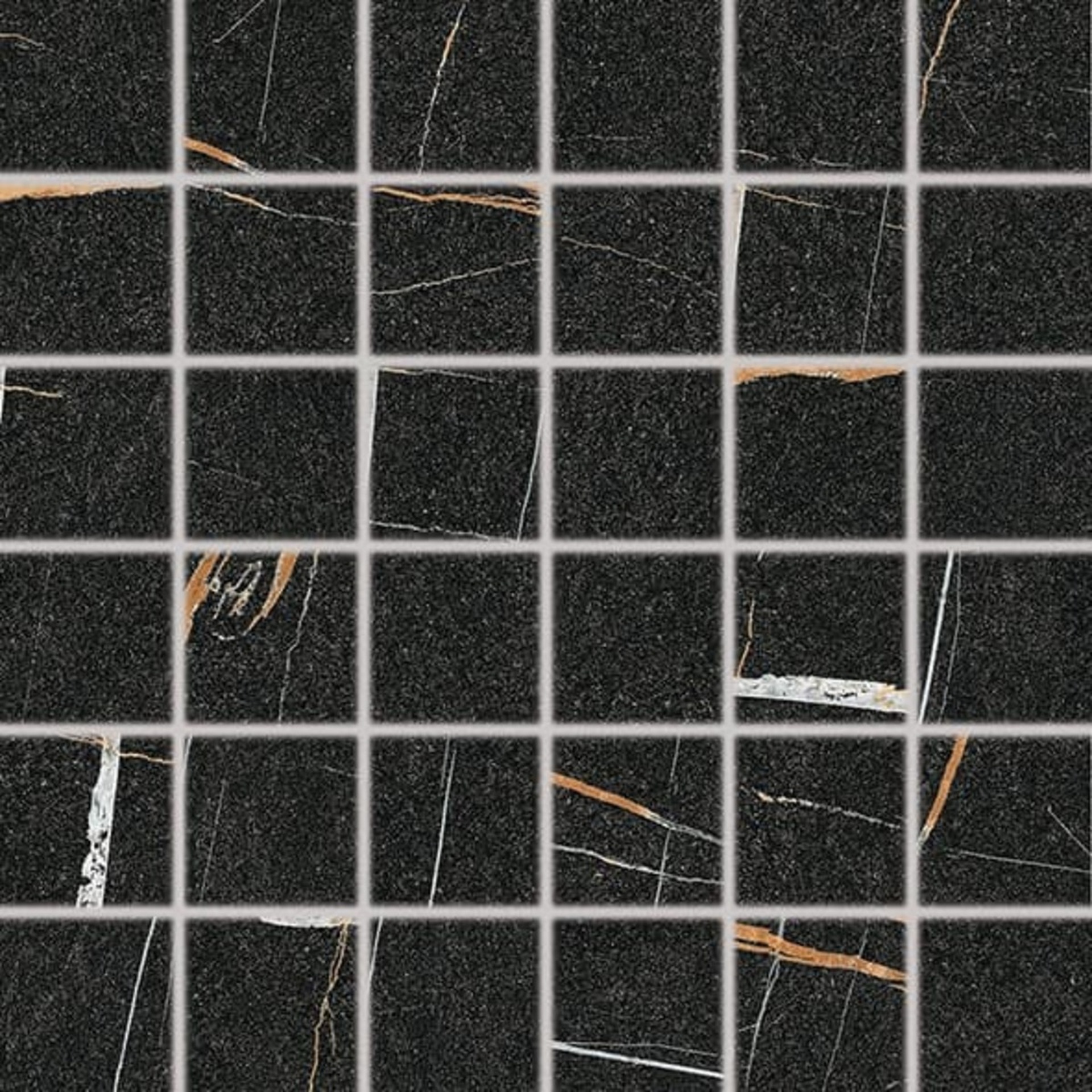 Rektifikované. Mrazuvzdorné. Mozaika v černé barvě v imitaci mramoru o rozměru 4,8x4,8 cm a tloušťce 10 mm s matným povrchem. Vhodné do interiéru i exteriéru. S velkými a nahodilými odchylkami v odstínu barev, struktury povrchu a kresby.