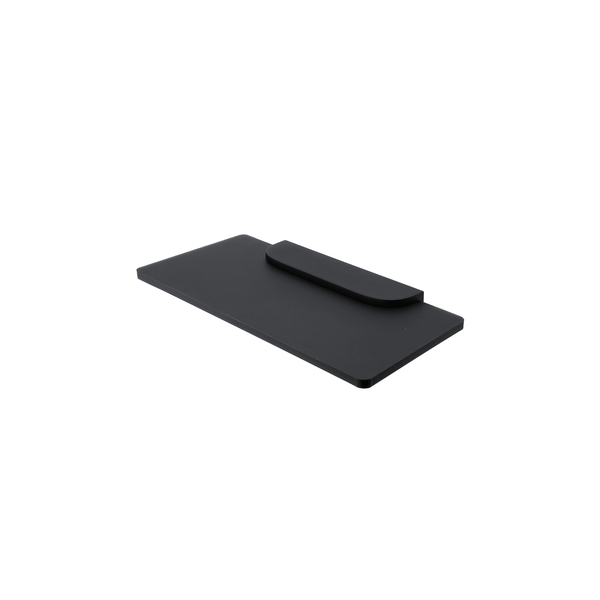 Materiál černý plexiglass s matovaným povrchem. Délka 20 cm. Minimalistický a nadčasový design doplňků perfektně padne do interiérů moderních koupelen. Oblé rohy navozují v koupelně útulnost, ale zároveň působí esteticky a čistě. Masivní pochromované úchyty lze kombinovat s nádobkami z matovaného skla i keramiky a tyto kombinace vyzařují eleganci.