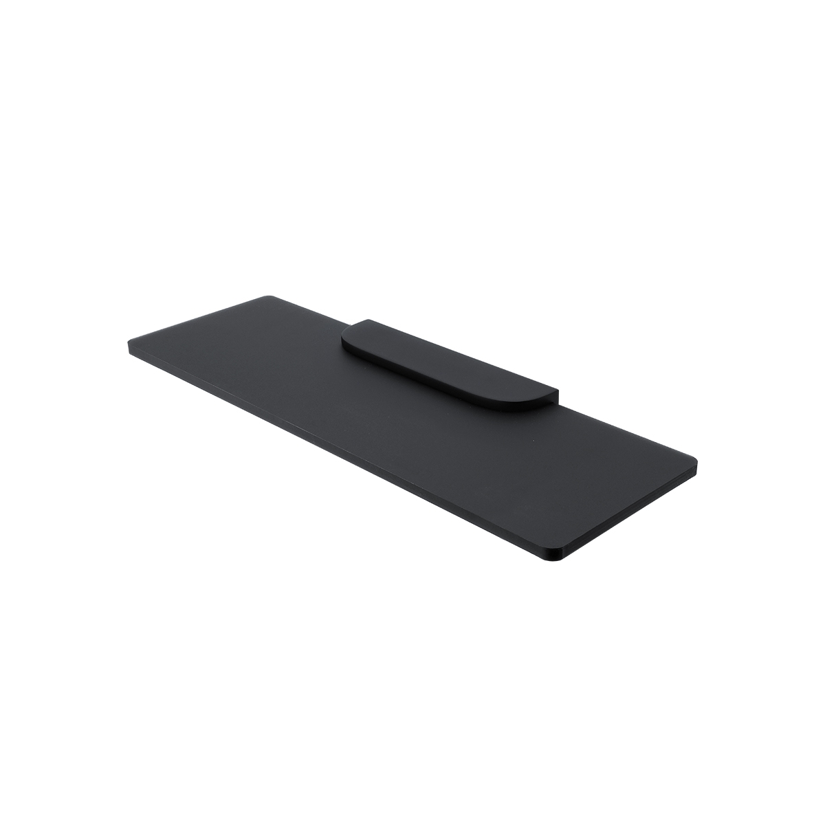 Materiál černý plexiglass s matovaným povrchem. Délka 40 cm. Minimalistický a nadčasový design doplňků perfektně padne do interiérů moderních koupelen. Oblé rohy navozují v koupelně útulnost, ale zároveň působí esteticky a čistě. Masivní pochromované úchyty lze kombinovat s nádobkami z matovaného skla i keramiky a tyto kombinace vyzařují eleganci.