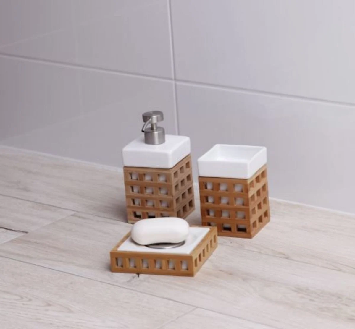 Elegantní volně stojící mýdlenka LIBRA ze dřevěného materiálu.