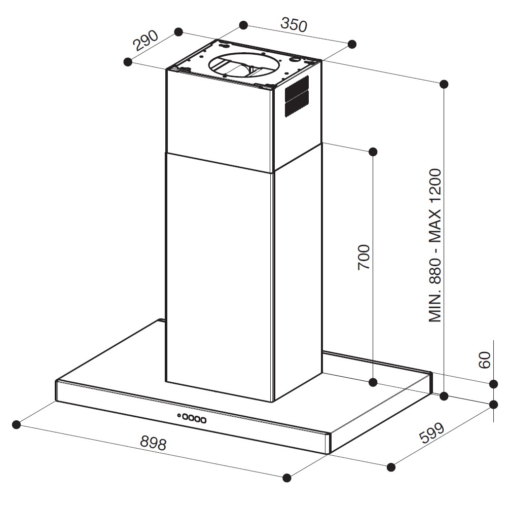 Lze ji také propojit s externím motorem na fasádu MISTRAL. V tomto případě jsou technické parametry digestoře shodné s parametry externí ventilační jednotky.