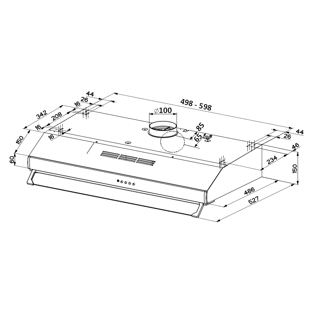 Podvěsný odsavač par určený k zabudování pod skříňku v bílém provedení nabízí vynikající poměr cena - užitná hodnota. Ovládání je tlačítkové, skleněné výklopné čílko zvětšuje sací plochu digestoře. Odtahové potrubí lze napojit jak z horní části digestoře, tak zezadu.