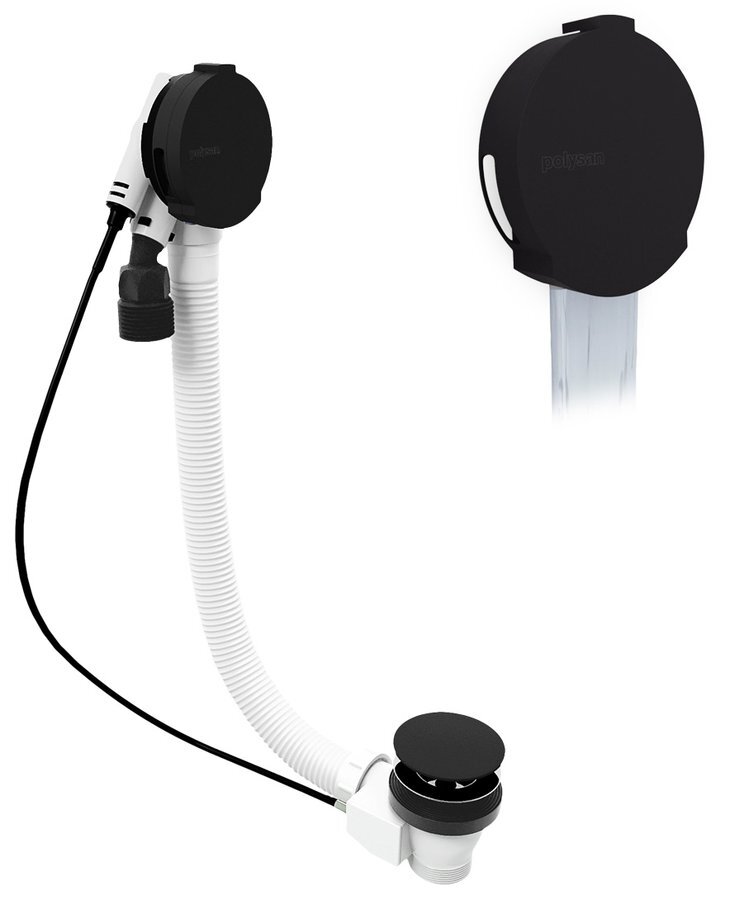 Polysan Vanová souprava s napouštěním, bovden, délka 800mm, zátka 72mm, černá mat - 71853.21