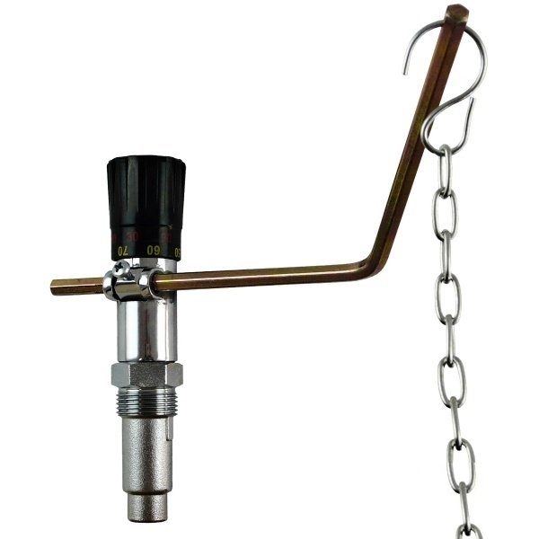 Regulátor tahu pro kotle na tuhá paliva s vyšším opláštěním. Reguluje výstupní teplotu pracovní kapaliny ze zdroje na hodnotu nastavenou knoflíkem.