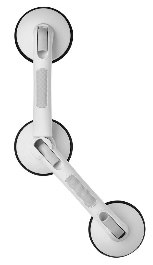 Koupelnové madlo s přísavkami. Nastavitelný úhel. Bílý povrch. Plastové provedení, kruhový design, instalace přísavkou, nosnost 120 kg. Vhodné do sprchy, vany, na wc.