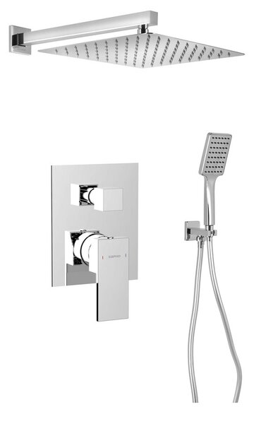 Podomítková sprchová baterie v chromu. Pákové ovládání, tlakový přepínač, 2 výstupy, funkce déšť, AntiCalc. Hranatý design, záruka 6 let.