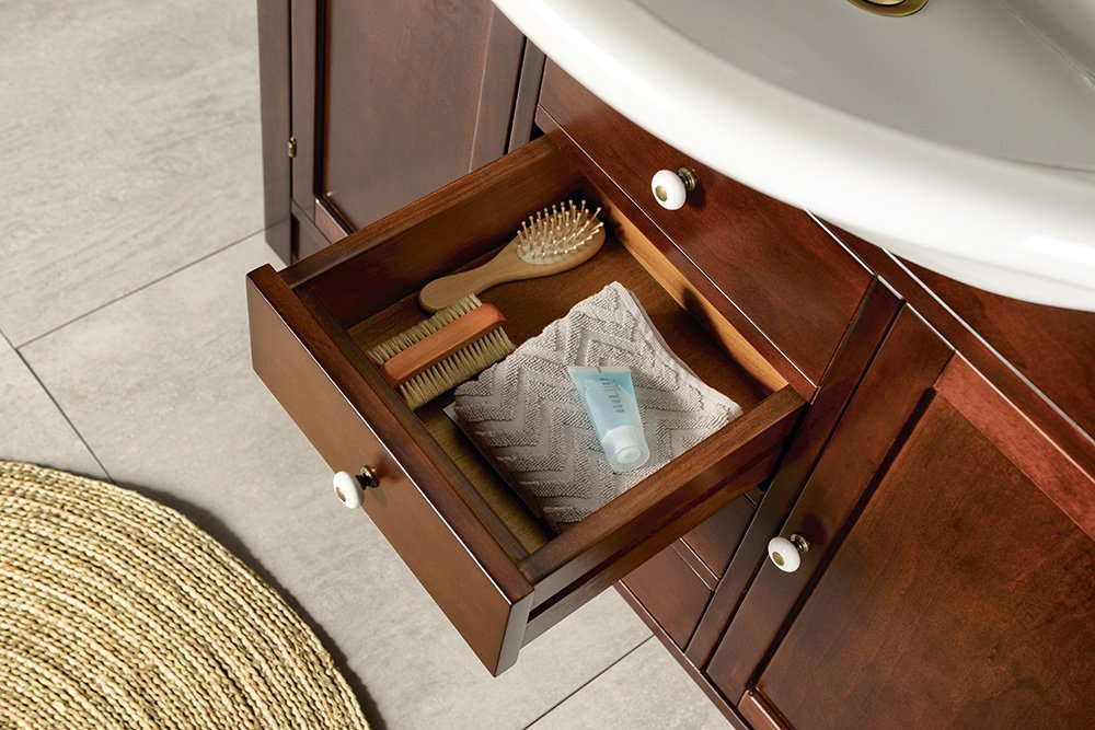 Série Sapho Galanta přináší koupelnový nábytek v retro stylu s důrazem na kvalitu, masivní dřevo a tradiční vzhled. Nábytek je vyroben z kombinace masivního dřeva, které vytváří pocit tepla a elegance a zdůrazňuje přirozenou krásu materiálu. Každý kus nábytku je dodáván smontovaný a připravený k okamžité instalaci, což usnadňuje montáž a užívání. Série zahrnuje různé prvky koupelnového vybavení, které lze sladit do jednotného interiéru a zároveň vám poskytují praktický úložný prostor pro vaše potřeby. Nábytek Galanta kombinuje nadčasový retro design, pevné zpracování a funkčnost, díky čemuž je ideální volbou pro ty, kdo chtějí přidat do své koupelny jedinečný charakter a klasický vzhled.
