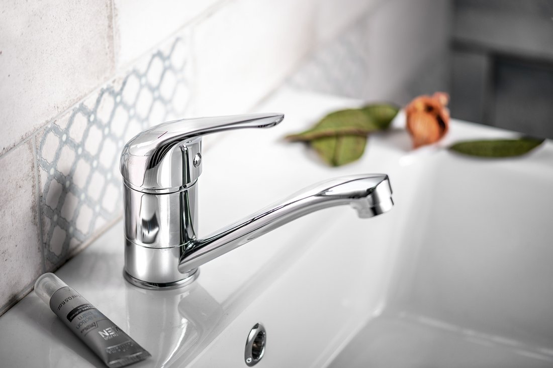 Stojánková páková umyvadlová baterie, bez výpusti. Výška baterie 126 mm. Kartuše 40 mm.