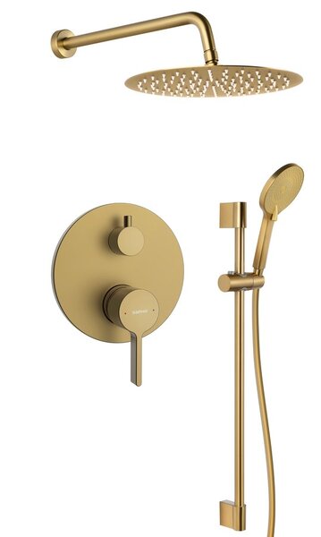 Popis produktu Sapho ICONIC podomítkový sprchový set s pákovou baterií, 2 výstupy, posuvný držák sprchy, zlato mat - AF042GB-02