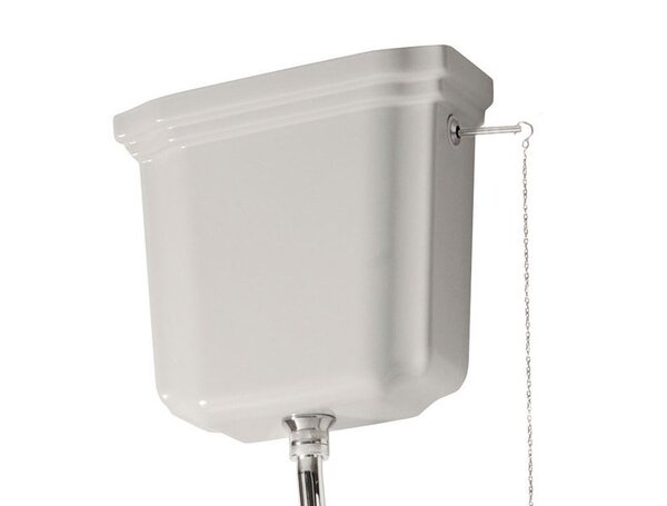 Keramická závěsná WC nádržka v retro designu v bílé barvě. Kompaktní rozměry 400×360×140 mm, vhodná do klasických i stylových koupelen.