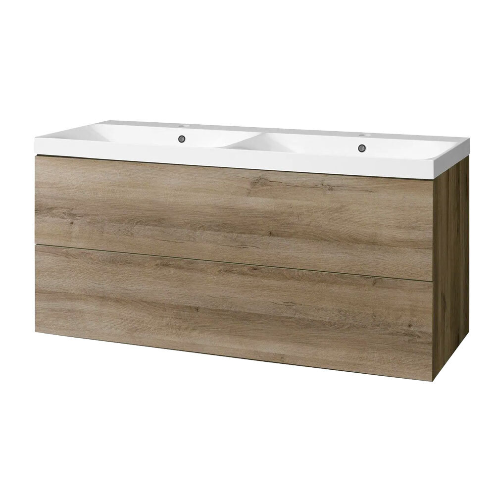 Aira, koupelnová skříňka s umyvadlem z litého mramoru, 1210x578x465 mm, spodní, dub Halifax, 2 zásuvky, push-open systém a pomalé dovírání.