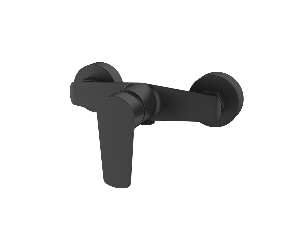 Páková nástěnná sprchová baterie bez sprchového setu v černé barvě. Rozteč baterie 150 mm. S matným povrchem.