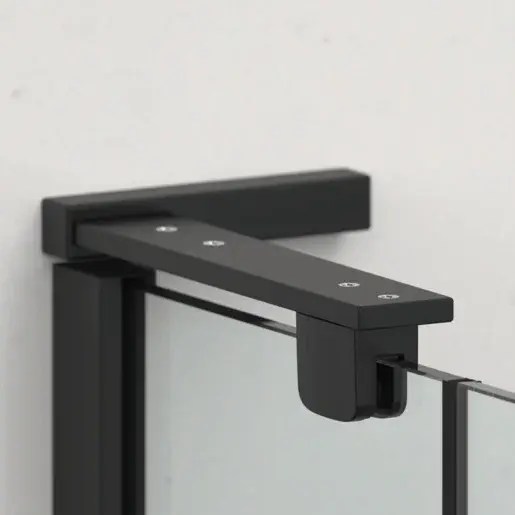 Sprchový kout bez vaničky a barvou profilů v černé barvě, výplň je z čirého skla bez dekoru. Produkt...