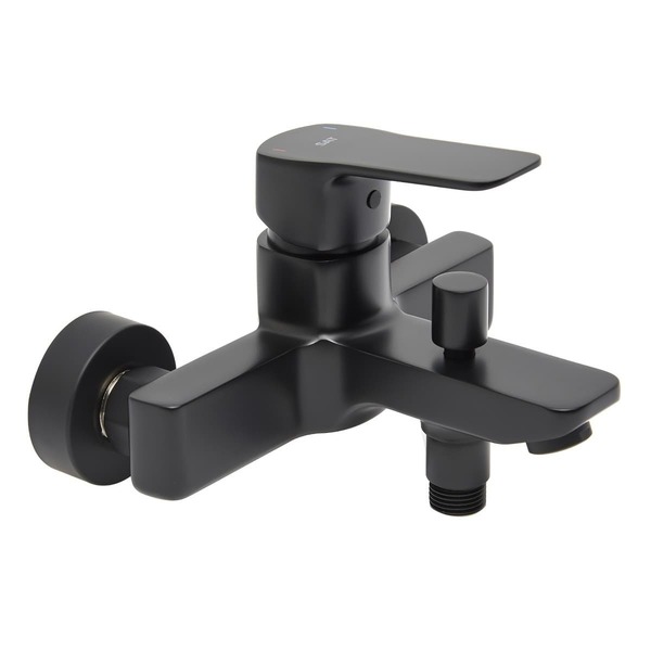 Páková nástěnná vanová baterie bez sprchového setu v barvě černá matná. Průtok baterie je 18,4 litrů/minutu. Rozteč baterie 150 mm. S matným povrchem.