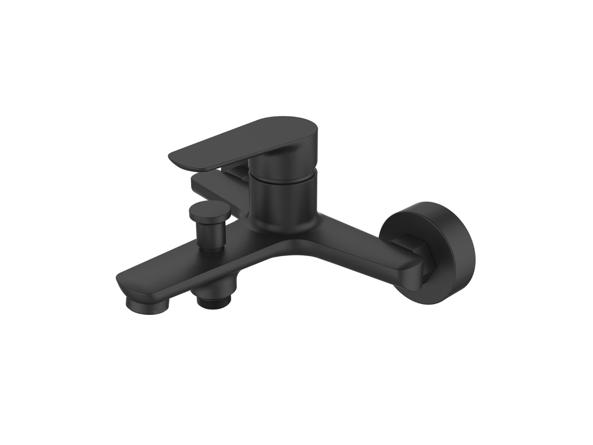 Páková nástěnná vanová baterie bez sprchového setu v černé barvě. Rozteč baterie 150 mm. S matným povrchem.
