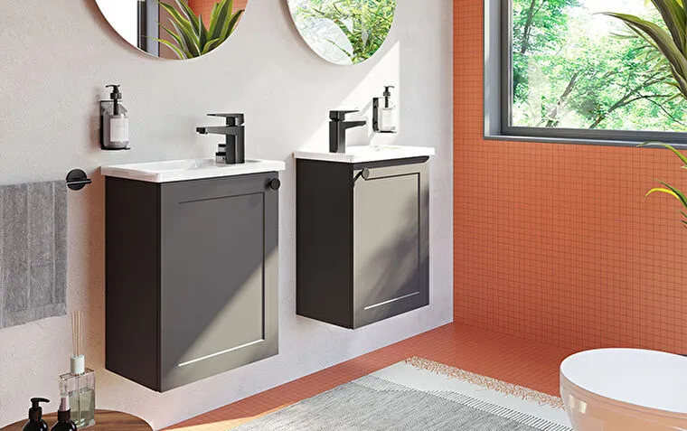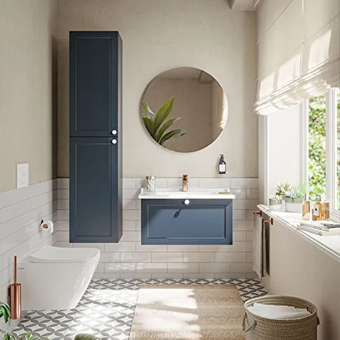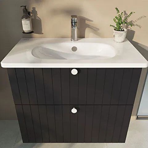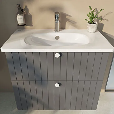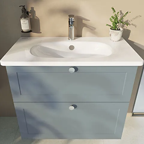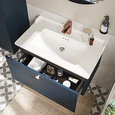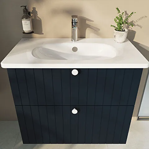 Závěsná koupelnová skříňka s keramickým umyvadlem v modrém provedení s matným povrchem o rozměru 80x...