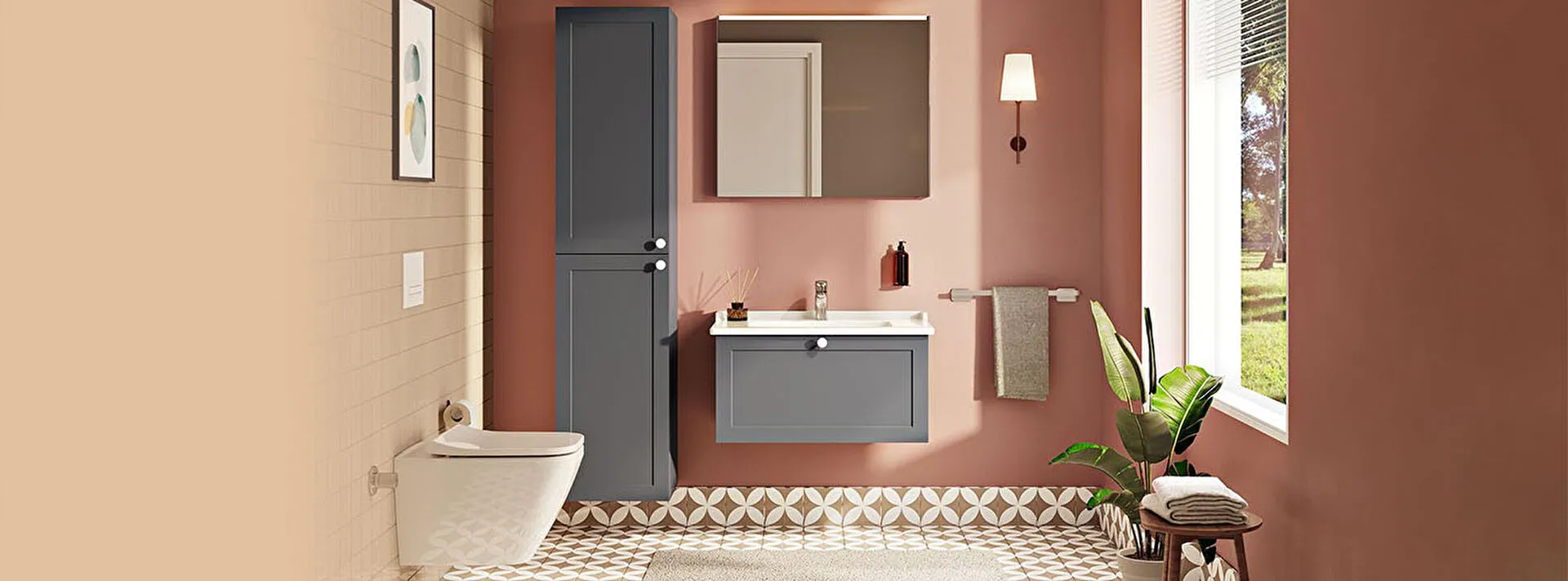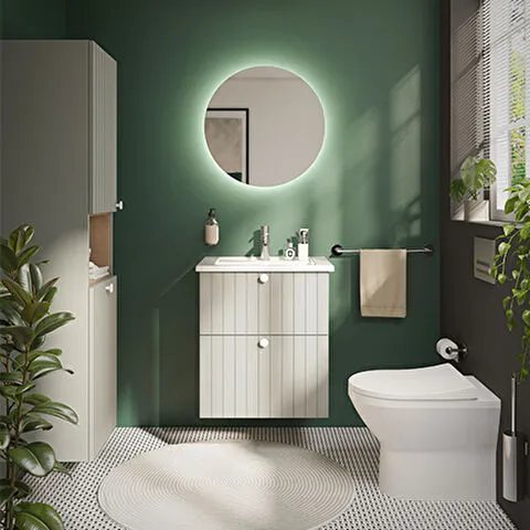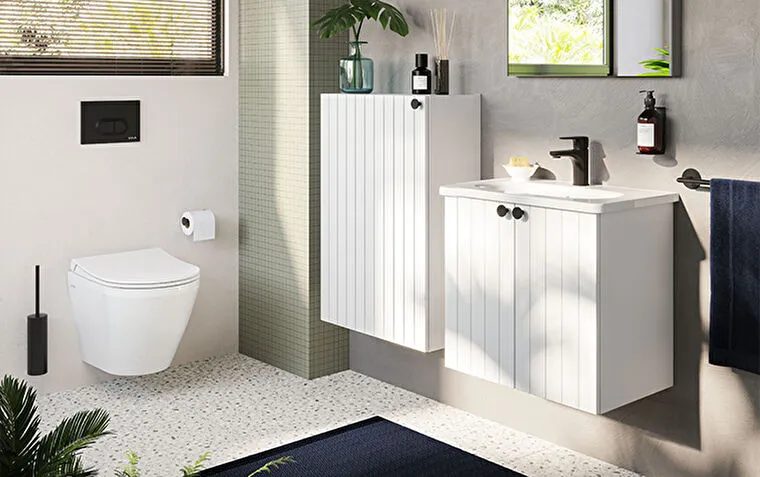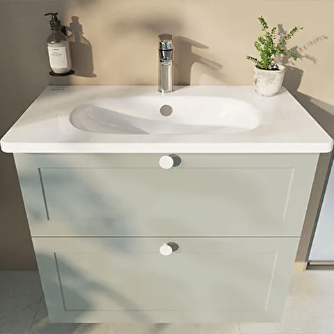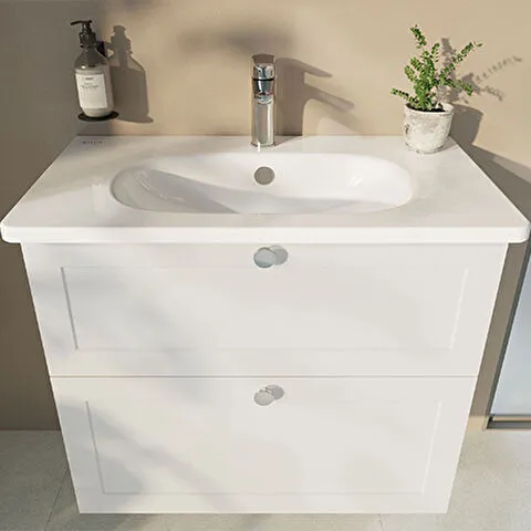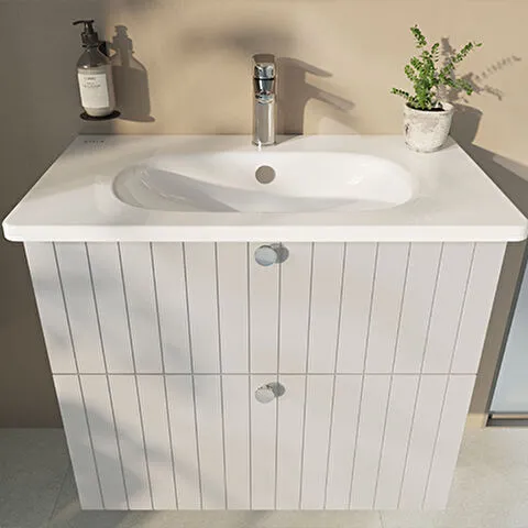 Závěsná koupelnová skříňka s keramickým umyvadlem v bílé barvě s matným povrchem o rozměru 100x67x46...
