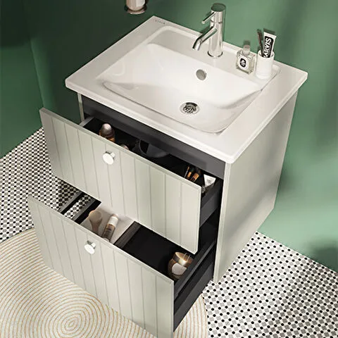 Závěsná koupelnová skříňka s keramickým umyvadlem v modrém provedení s matným povrchem o rozměru 60x...