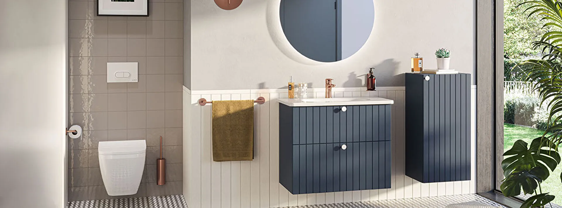 Závěsná koupelnová skříňka s keramickým umyvadlem v modrém provedení s matným povrchem o rozměru 100...